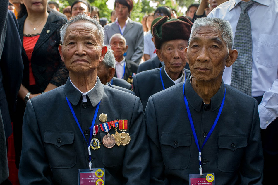 Several veterans of Chinese Expeditionary Force attend the ceremony of reburial on June 12. (Xinhua/Hu Chao)