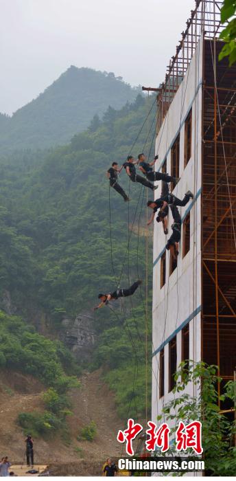 Police in Qiannan Prefecture, southwest China's Guizhou Province, holds a drill to practice anti-terrorism, emergency response and other skills to improve their ability in emergency disposal on June 12, 2014. (Chinanews/Wu Qingyuan)