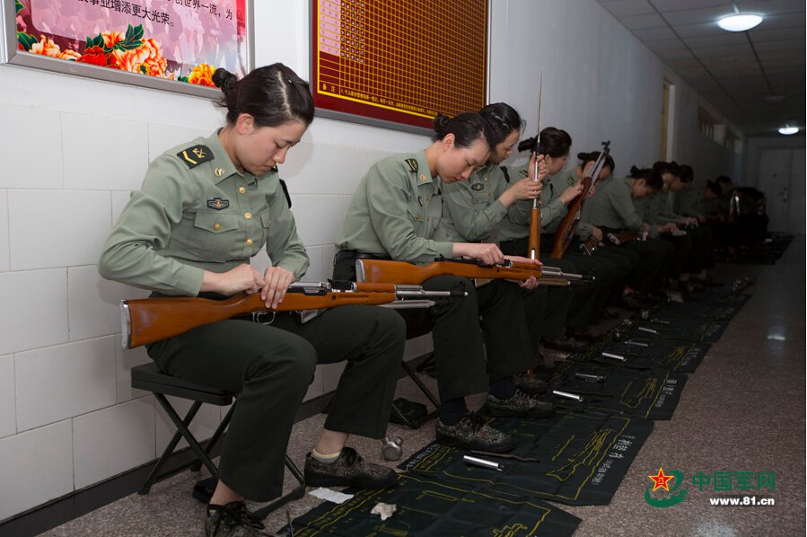 Clad in skirts, riding boots and hair pulled back into the classic chignon, female People’s Liberation Army honor guards have attracted the attention of the world since they made debut on May 12. Their knee-high skirts and five-centimeter heels singled them out from the rows and rows of sober, hunter-green uniforms of male soldiers. (Photo source: 81.cn)