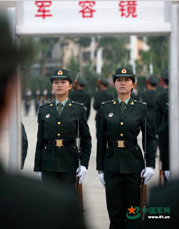 Clad in skirts, riding boots and hair pulled back into the classic chignon, female People’s Liberation Army honor guards have attracted the attention of the world since they made debut on May 12. Their knee-high skirts and five-centimeter heels singled them out from the rows and rows of sober, hunter-green uniforms of male soldiers. (Photo source: 81.cn)