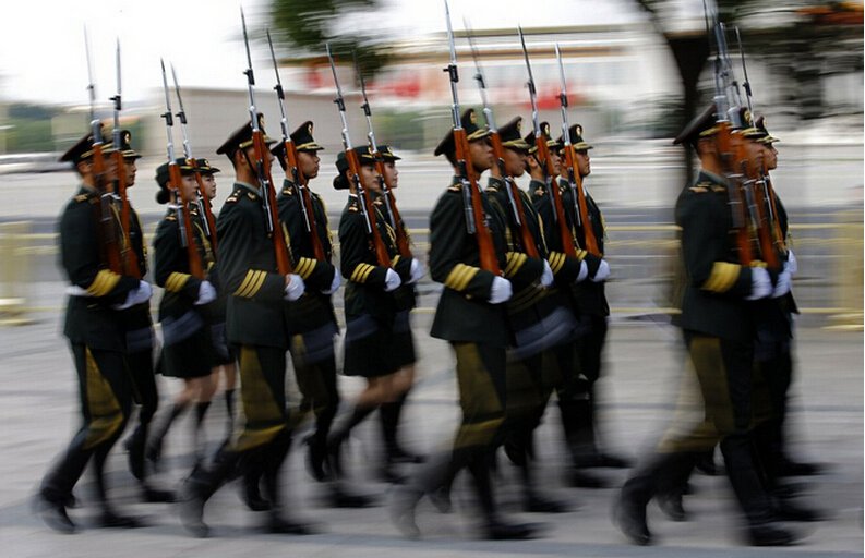Clad in skirts, riding boots and hair pulled back into the classic chignon, female People’s Liberation Army honor guards have attracted the attention of the world since they made debut on May 12. Their knee-high skirts and five-centimeter heels singled them out from the rows and rows of sober, hunter-green uniforms of male soldiers. (Photo source: 81.cn)