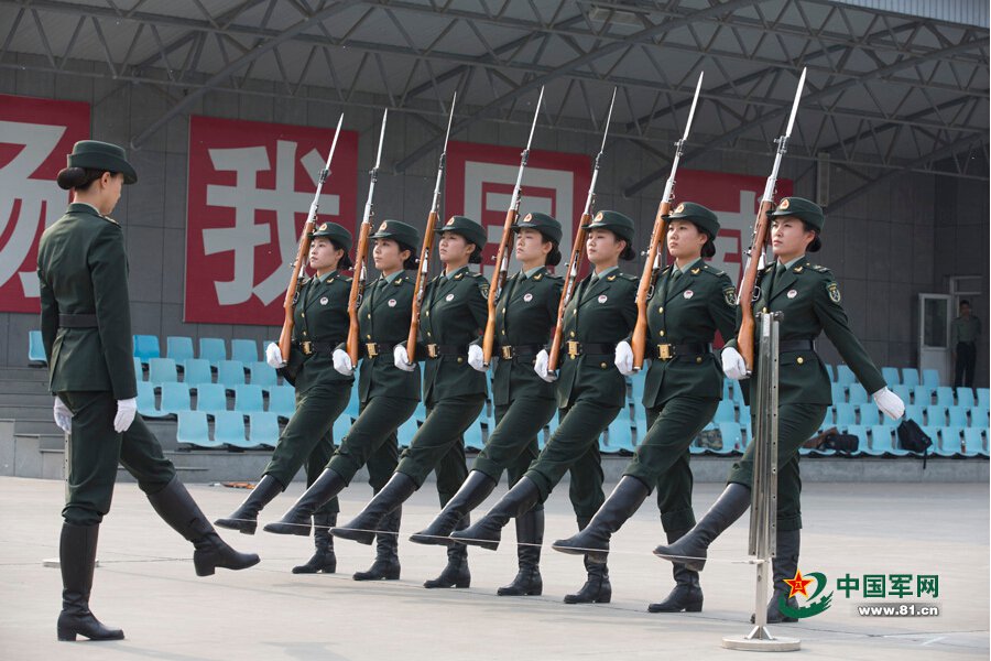 Clad in skirts, riding boots and hair pulled back into the classic chignon, female People’s Liberation Army honor guards have attracted the attention of the world since they made debut on May 12. Their knee-high skirts and five-centimeter heels singled them out from the rows and rows of sober, hunter-green uniforms of male soldiers. (Photo source: 81.cn)
