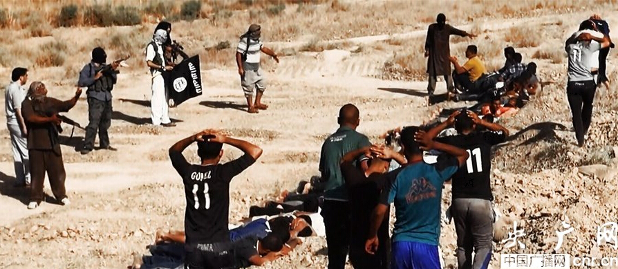 An image uploaded on June 14, 2014 on the jihadist website Welayat Salahuddin allegedly shows militants of the Islamic State of Iraq and the Levant (ISIL) executing dozens of captured Iraqi security forces members at an unknown location in the Salaheddin province. A major offensive spearheaded by ISIL but also involving supporters of executed dictator Saddam Hussein has overrun all of one province and chunks of three others since it was launched on June 9. [Photo/Cnr.cn]
