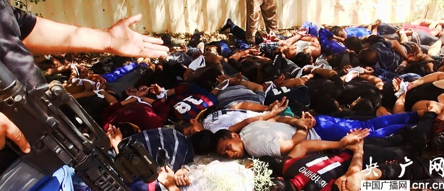 An image uploaded on June 14, 2014 on the jihadist website Welayat Salahuddin allegedly shows militants of the Islamic State of Iraq and the Levant (ISIL) executing dozens of captured Iraqi security forces members at an unknown location in the Salaheddin province. A major offensive spearheaded by ISIL but also involving supporters of executed dictator Saddam Hussein has overrun all of one province and chunks of three others since it was launched on June 9. [Photo/Cnr.cn]