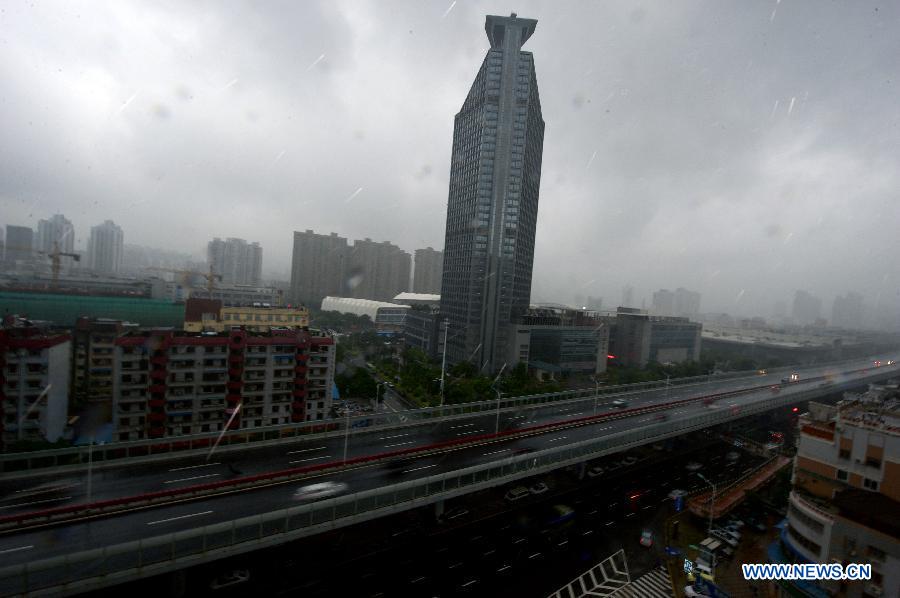 Dark clouds cover the sky in Xiamen, southeast China's Fujian Province, June 16, 2014. The typhoon Hagibis brought torrential rain to Xiamen on Monday. (Xinhua/Jiang Kehong)