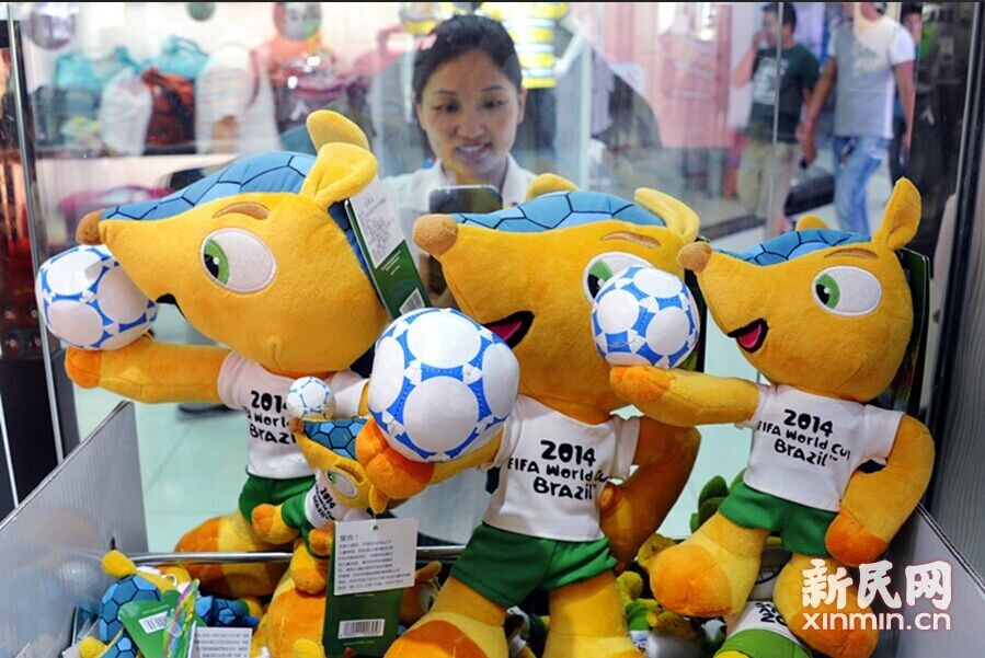 Armadillo, the mascot for the 2014 World Cup is sold in a store in Shanghai. (Xinmin Evening News/Yang Jianzheng)