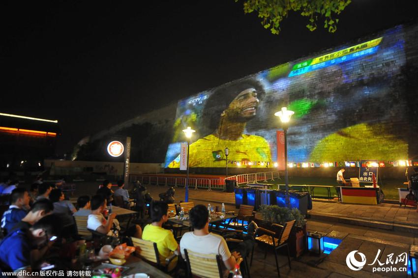 Watching the World Cup at a bar or cinema is no longer new - now, Nanjing citizens can enjoy the broadcast on the Ming Dynasty (1368-1644) city wall. Since the morning of June 13, 2014, the World Cup matches have been broadcasted on the city wall through projectors in Laomendong historical block of Nanjing. Many citizens were attracted here to watch the matches on the "screen" as big as 1,000 square meters.(People's Daily Online)
