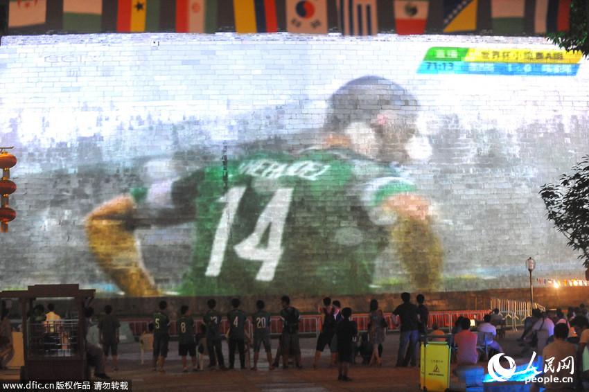 Watching the World Cup at a bar or cinema is no longer new - now, Nanjing citizens can enjoy the broadcast on the Ming Dynasty (1368-1644) city wall. Since the morning of June 13, 2014, the World Cup matches have been broadcasted on the city wall through projectors in Laomendong historical block of Nanjing. Many citizens were attracted here to watch the matches on the "screen" as big as 1,000 square meters.(People's Daily Online)