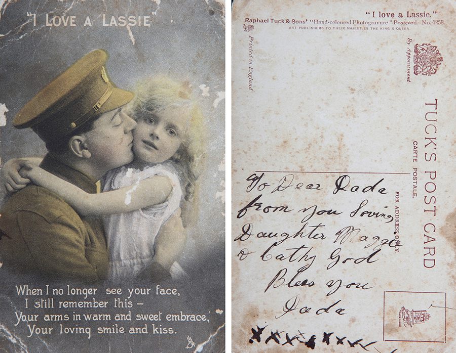 A postcard sent from a girl to her father, who was killed in a battlefield in Belgium in August 1917. (Xinhua/ AP)