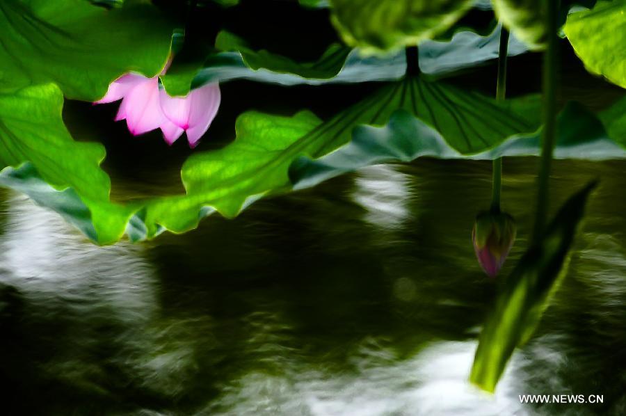 Photo taken on June 18, 2014 shows a lotus flower at Quancheng Park in Jinan, capital of east China's Shandong Province. (Xinhua/Guo Xulei)