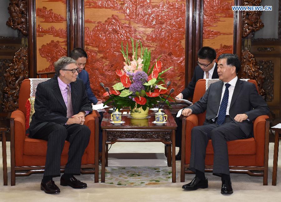 Chinese Vice Premier Wang Yang (1st R) meets with Bill Gates, co-chair of the Bill & Melinda Gates Foundation, in Beijing, capital of China, June 17, 2014. (Xinhua/Ma Zhancheng)