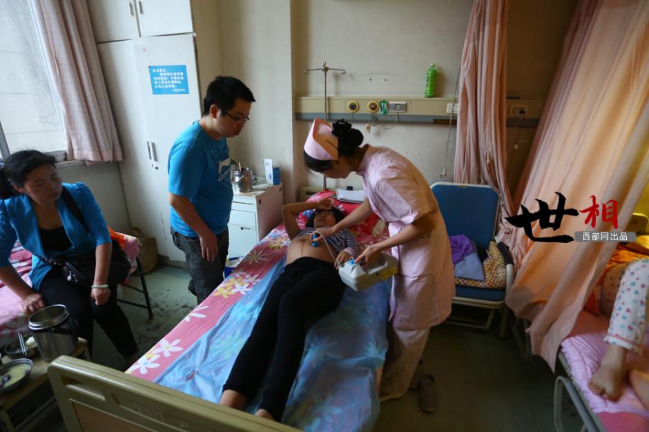 Liu accompanies his wife to do medical check in the hospital on May 23, because his wife had contraction. (Photo/cnwest)