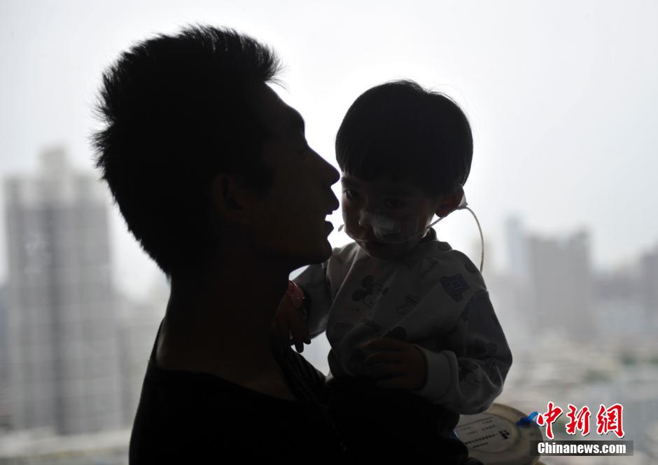 Several times a day, Wang Zhihua carefully chews food before passing it to his three-year-old daughter, who opens her mouth wide like a baby bird. (CNS/ Wei Liang)