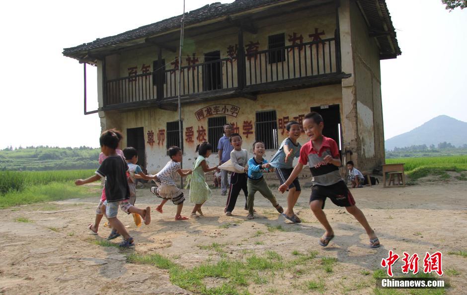 Zeng Xiangwei and his 13 pupils. Established in 1950, Lianglongche village school, located in a remote village in Dao County, Central China's Hunan Province, has only one teacher and 13 pupils. Zeng has been working there for 38 years. [Photo / Chinanews.com]