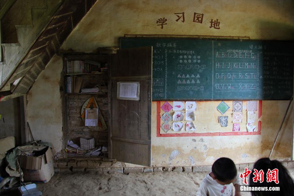 Established in 1950, Lianglongche village school, located in a remote village in Dao County, Central China's Hunan Province, has only one teacher and 13 pupils. [Photo / Chinanews.com]