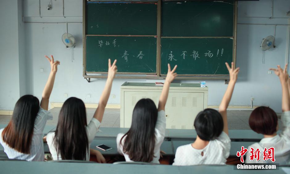 Graduates take photos in Sichuan University of Arts and Science, June 17, 2014. (Chinanews.com/Wan Yanming)
