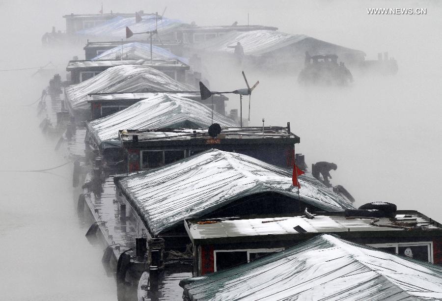 Photo taken on Feb. 7, 2014 shows snow-covered boats on the Huai'an section of China's Grand Canal, east China's Jiangsu Province. China's Grand Canal, the longest artificial waterway in the world, was inscribed on the World Heritage list on June 22, 2014. The Grand Canal with a history of more than 2,400 years was recognized by UNESCO World Heritage Committee which convened its 38th session in the Qatari capital. The 1,794-km canal runs from Beijing to Hangzhou in China's eastern Zhejiang Province. (Xinhua)