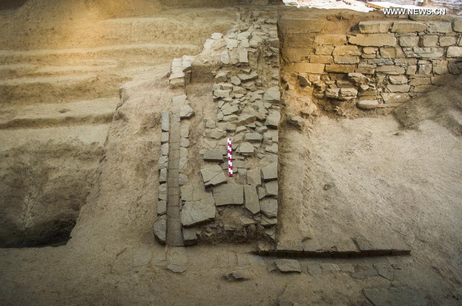 The file photo shows the packway and drainage channel at the ruins of Hanguguan Pass in Xin'an County of Luoyang City, central China's Henan Province. The famous ancient Silk Road, which served as a corridor for trade and cultural exchanges between Asia and Europe dating back to 2,000 years ago, was inscribed on the World Heritage list at Doha, capital of Qatar on June 22, 2014. Jointly submitted by China, Kazakhstan and Kyrgyzstan, the application for adding part of the millennium-old trade route to the UNESCO list was approved by the World Heritage Committee which convened its 38th session in Doha. (Xinhua)