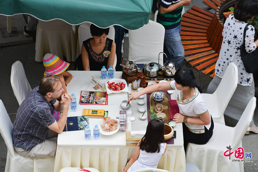 Authorities of Beijing's renowned Maliandao 'Tea' Street and Beijing's municipal government jointly launch a summer promotion on Saturday, June 21, 2014 to allow international people living in Beijing to have a better understanding of China's tea culture. (Photo: China.org.cn)