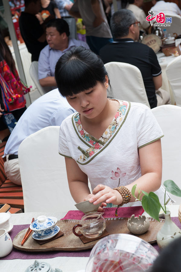 | Authorities of Beijing's renowned Maliandao 'Tea' Street and Beijing's municipal government jointly launch a summer promotion on Saturday, June 21, 2014 to allow international people living in Beijing to have a better understanding of China's tea culture. (Photo: China.org.cn) |