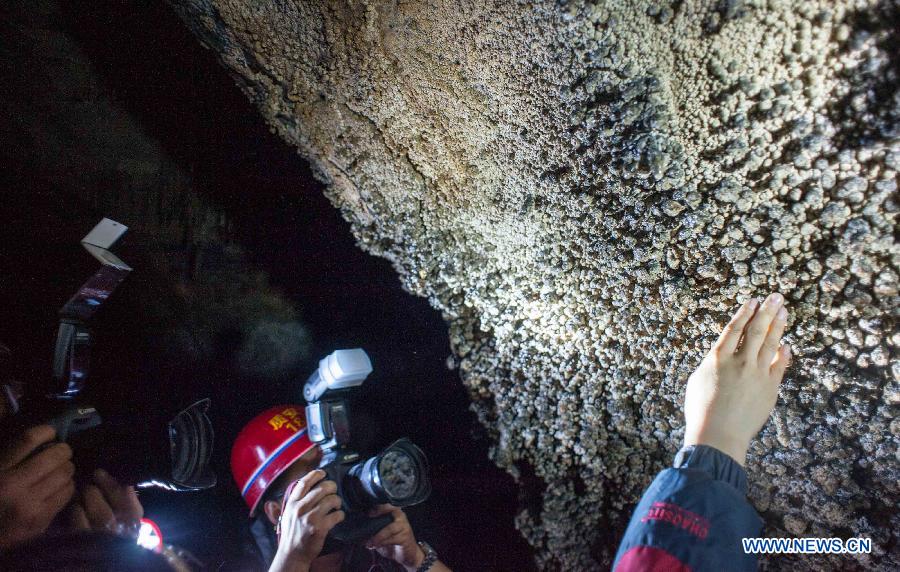 Photo taken on May 20, 2014 shows the stone flowers inside the Jinfo (Golden Buddha) Cave of Jinfo Mountain, southwest China's Chongqing. The World Heritage Committee on Monday inscribed an extension of South China Karst, a natural World Heritage Site since 2007, into the UNESCO's World Heritage List. (Xinhua/Liu Chan)