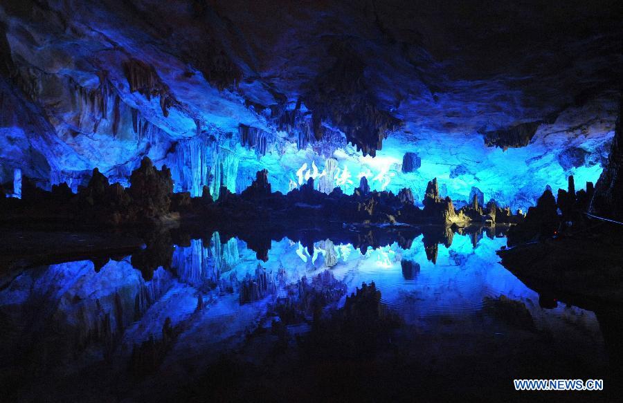 Photo taken on April 9, 2013 shows the scenery of stalactites inside the Reed Flute Cave in Guilin, south China's Guangxi Zhuang Autonomous Region. The World Heritage Committee on Monday inscribed an extension of South China Karst, a natural World Heritage Site since 2007, into the UNESCO's World Heritage List. (Xinhua/Lu Bo'an)