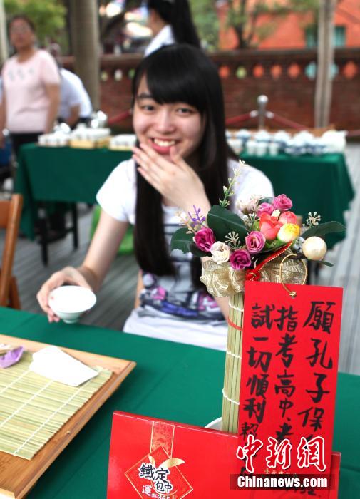 Over 100 students and parents participant in a praying ceremony, which is aimed at bringing the students good luck on their tests in Taipei on Saturday. (CNS/Chen Xiaoyuan)