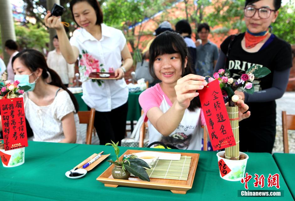 Over 100 students and parents participant in a praying ceremony, which is aimed at bringing the students good luck on their tests in Taipei on Saturday. (CNS/Chen Xiaoyuan)