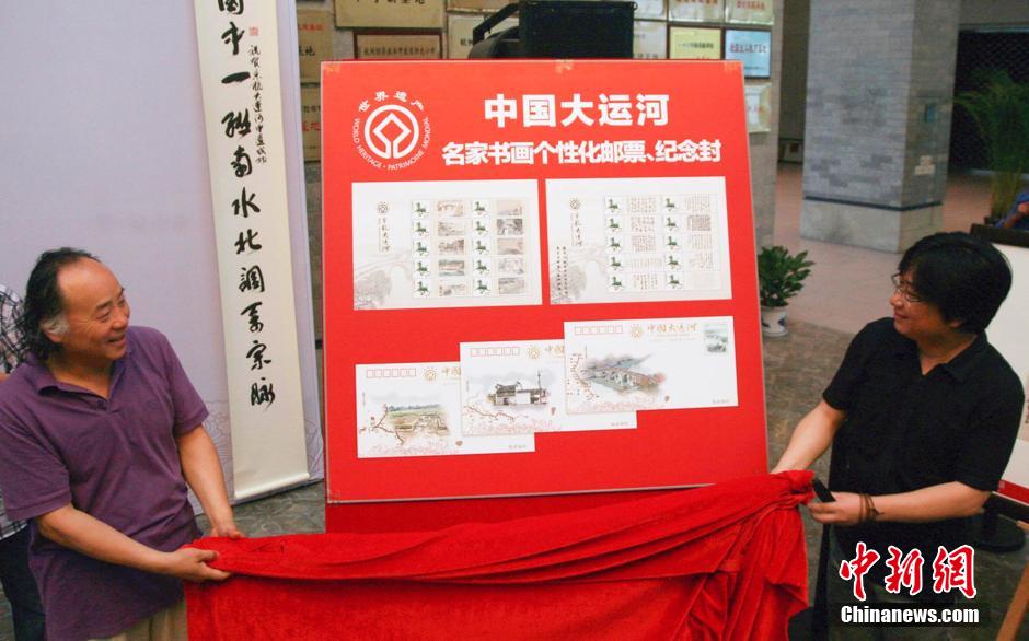 In celebration of the Grand Canal's inclusion on the World Heritage list, a ceremony for the issuance of a series of stamps and commemorative envelopes with ten scenes of the Grand Canal drawn by famous artists is held in Hangzhou, east China's Zhejiang Province, June 23, 2014. Each set is composed of three envelopes with the words "China's Grand Canal has been inscribed on the World Heritage List". At most 20,000 sets will be issued in Zhejiang Province. (Chinanews.com/Li Chenyun)