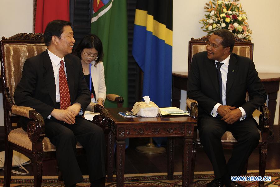 Tanzanian President Jakaya Kikwete (R) meets with visiting Chinese Vice President Li Yuanchao in Dar es Salaam, Tanzania, June 23, 2014. (Xinhua/Zhou Xiaoxiong)