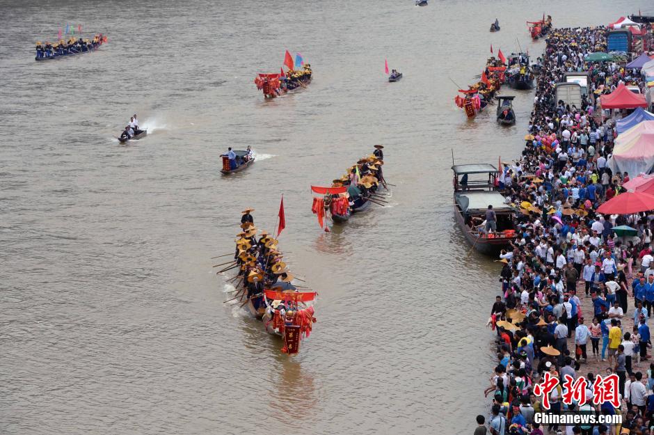 Miao people celebrate the annual Dragon Canoe Festival in Taijiang County, southwest China's Guizhou Province on June 22, 2014. Thousands of Miao people participated in the celebrations. They held the dragon canoe race to pray for a good harvest. The celebration would last for four days and a series of folk activities would be held. With a history of more than 2,000 years, the Dragon Canoe Festival has been listed as a national intangible cultural heritage. (Chinanews/Qiao Qiming)