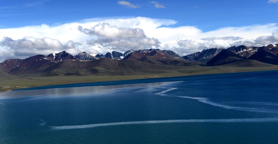 Photo taken on June 23, 2014 shows the scenery of the Nam Co ("heavenly lake" in Tibetan) in Damxung county, Southwest China's Tibet autonomous region, June 23, 2014. The Nam Co has entered its high season for tourism with the coming of summer.[Photo/Xinhua]