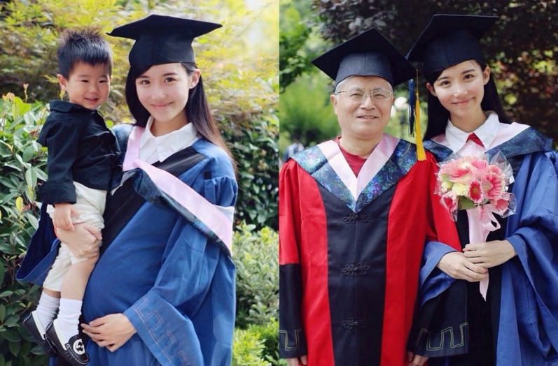 A woman master holder‘s graduation photos go viral on Weibo, a twitter-like social media in China. According to her Weibo, she gave birth to a boy in her second year of postgraduate study and conceived a girl while busy with her dissertation for the master degree. Netizens praised her for good arrangement of life. (Photo source: Guangzhou Daily)