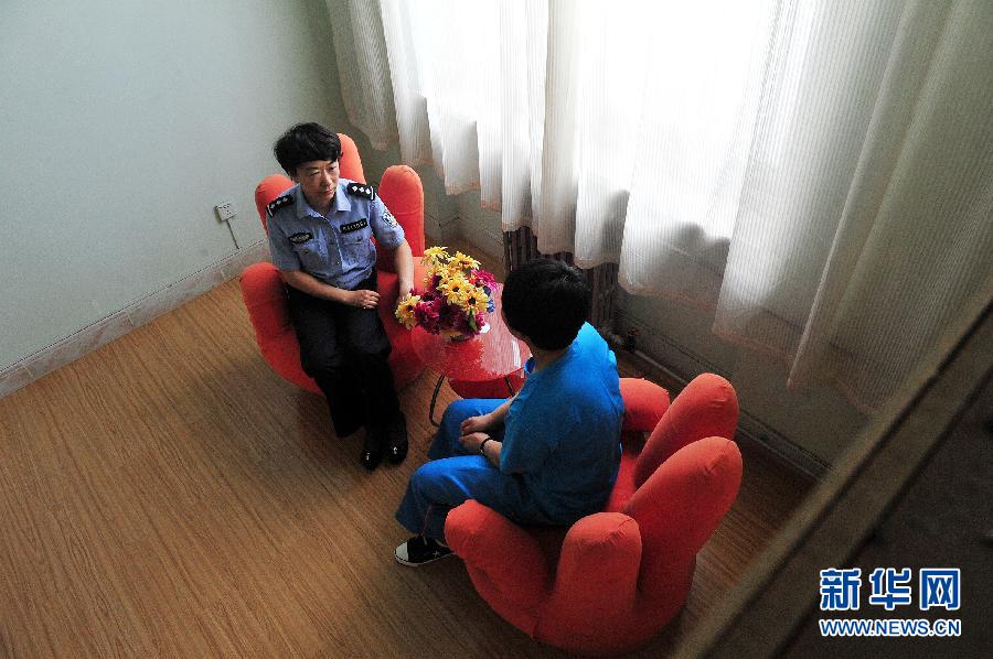 A recovering addict receives psychological counseling in the third compulsory rehabilitation center, northwest China's Ningxia Hui Autonomous Region, June 24, 2014. (Xinhua/Chen Junqing)