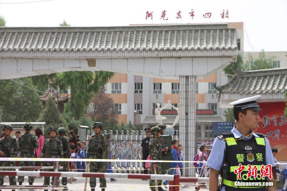 Keeping schools and kindergartens safe is their priority task. At 12:30 p,m., 30 minutes before school’s lunch break, Weili and Wei Jie set up an isolation strip in front of a primary school and began to direct traffic. (CNS/ Xiao Xin)