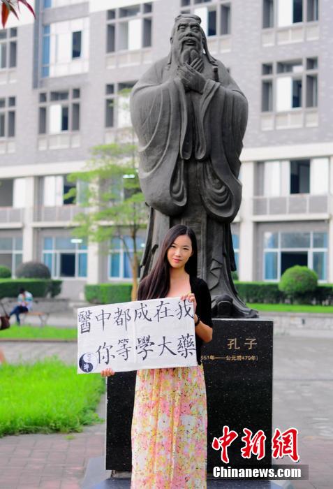 It is college enrollment season now. In addition to traditional ways of "snatching students", students in Chengdu University of TCM have done special "tricks" to help enrollment by taking a group of fresh and stylish photos to attract more students. (Chinanews.com/Gong Kun)