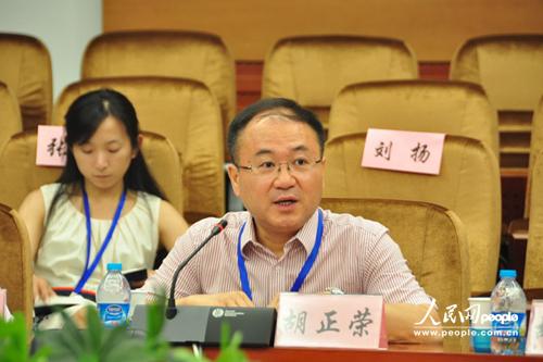 | Hu Zhengrong, vice president of Communication University of China delivers a speech at China Communication Forum 2014. (People’s Daily Online/ Yao Chun) |