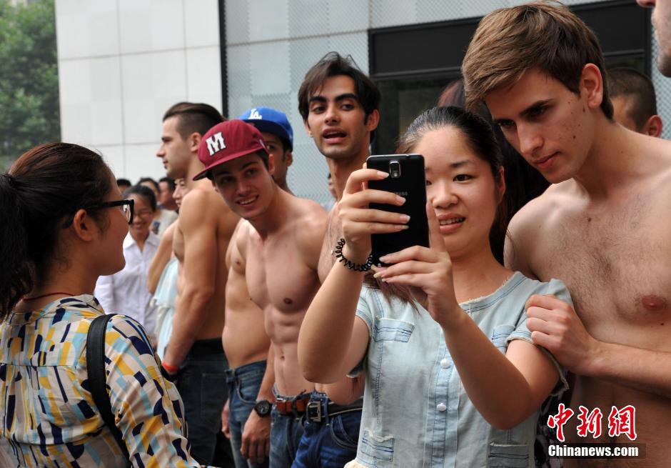 15 sexy international models present a show in the street of Hefei, capital of east China’s Anhui province on June 28, 2014, which attracted many people’s attention. (Photo/CNS)