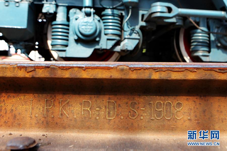 Train 6087 runs on a section of a rail track inscribed with the year “1908” in Zhangjiakou North Railway Station on June 30, 2014. (Photo/Xinhua)