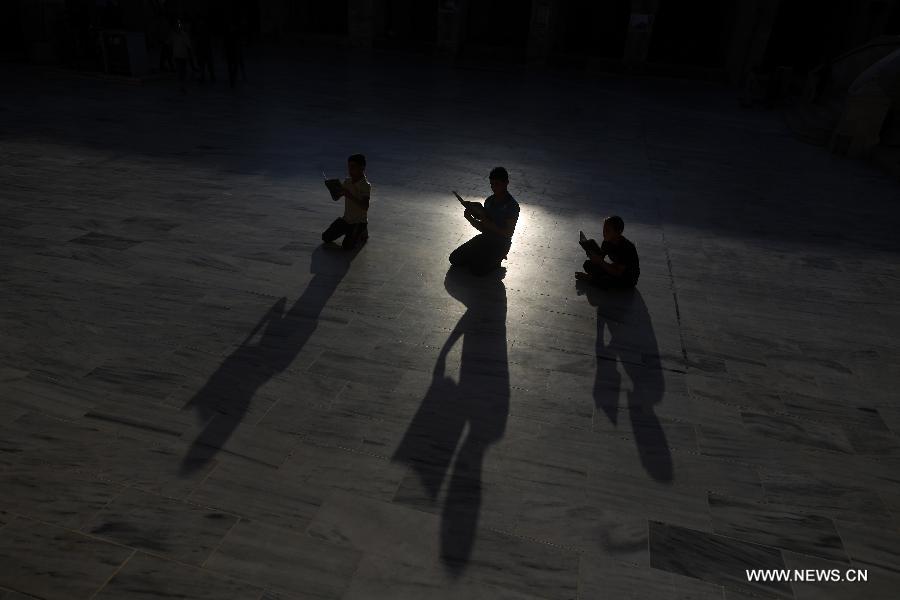 Palestinian boys read Quran at a Mosque in Gaza City on the third day of the Muslim fasting month of Ramadan, on July 1, 2014. Muslims around the world celebrate Ramadan, the holiest month in the Islamic calendar, in which they abstain from eating, drinking and conducting sexual relations from sunrise to sunset. (Xinhua/Wissam Nassar)