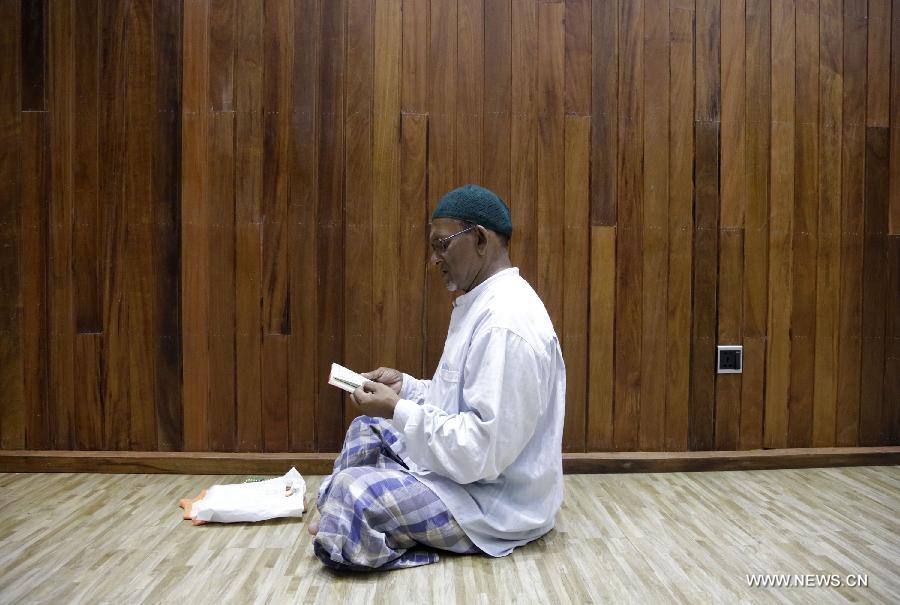 A Muslim reads the holy Koran at a mosque during the holy month of Ramadan in Yangon, Myanmar, July 1, 2014. Muslims throughout the world celebrate the holy fasting month of Ramadan. (Xinhua/U Aung)