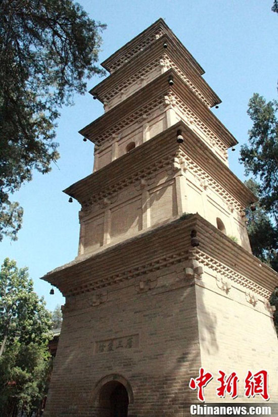 Sanzang Pagoda was erected in 1944 and the relic buried inside was a skull believed to be that of Xuanzang, a famous monk of the Tang Dynasty. (CNS/ Zhang Yichen)