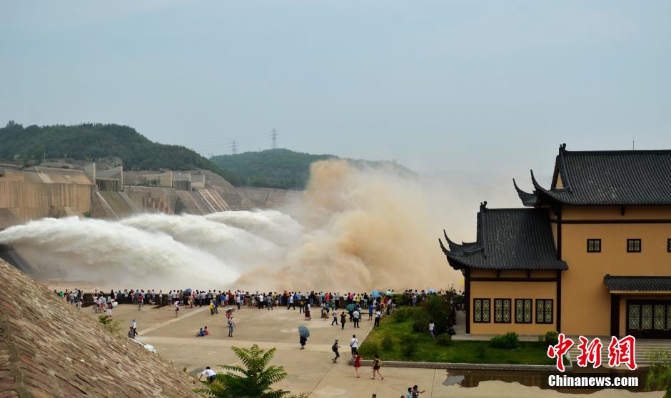 The sediment regulation begins at Xiaolangdi of Yellow River on June 30, 2014. The breathtaking landscape of rolling waves and towering waterfalls attracted visitors across the country. (Photo/CNS)