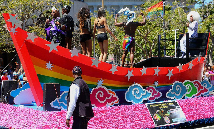 | An estimate of 100,000 spectators and visitors flock to San Francisco on Sunday for the 44th annual Gay Pride Parade. Thousands of people from different groups participated in the parade with signs, banners or rode on floats. (People’s Daily Online/Han Shasha) |