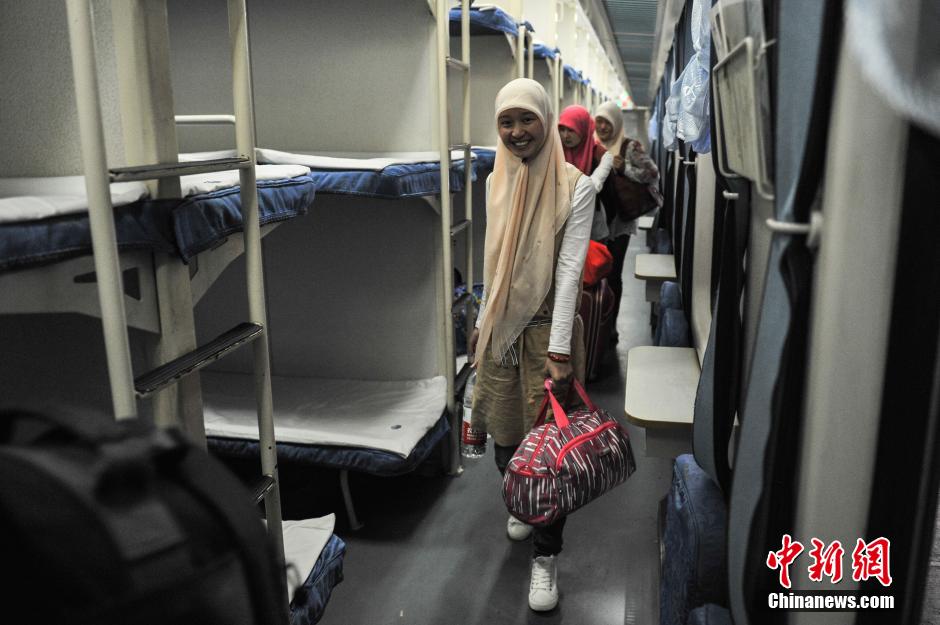 Passengers take train from Kunming to Urumqi at the Kunming Railway Station on July 1, 2014. The new operation diagram was implemented in the national railway across the country on the day. The train from Kunming to Urumqi which covers 4,220 kilometers; it has the longest one-way running time of 66 hours. (Photo/CNS)