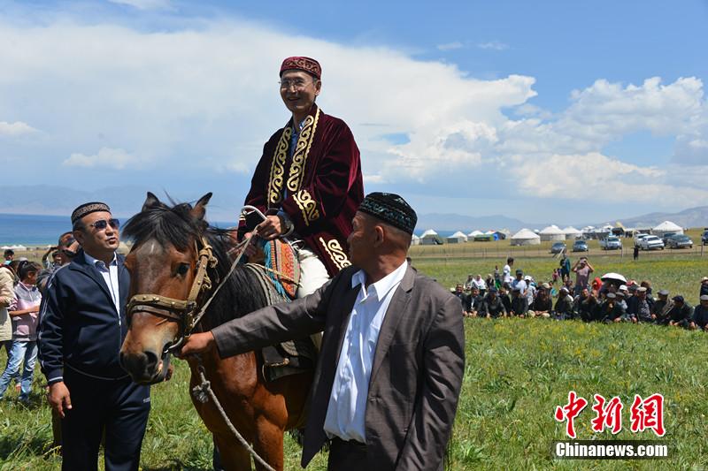 Taiwan woman Li Yongping got married with Harlech, a Kazak herdsman in Xinjiang. They held a wedding along the bank of beautiful Sayram Lake on June 30, 2014. As dowry, the bride’s parents bought 100 sheep for the couple to set up their own livestock-raising business and a flat worth 85,299 U.S. dollars. The groom gave betrothal gifts -- a Akhal-teke horse and two oxen - in return. Every male guest from the bride’s side received a Kazakh hat and a horsewhip, while every female guest got a piece of Kazakh cloth as gift. (CNS/Yu Mingjiang)