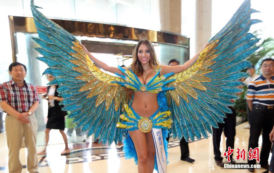 | On July 1, 2014, global ambassadors of ecotourism from 42 countries including France, Australia, Panama, and Canada dressed in national costumes gather in Nanjing to raise the curtain of the world tour of culture. They will join promotion events to raise public's green awareness, and show support to the forthcoming 2014 Nanjing Youth Olympic Games during their stay in Nanjing. (Chinanews.com/ Yang Bo) |