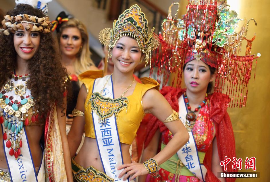On July 1, 2014, global ambassadors of ecotourism from 42 countries including France, Australia, Panama, and Canada dressed in national costumes gather in Nanjing to raise the curtain of the world tour of culture. They will join promotion events to raise public's green awareness, and show support to the forthcoming 2014 Nanjing Youth Olympic Games during their stay in Nanjing. (Chinanews.com/ Yang Bo)