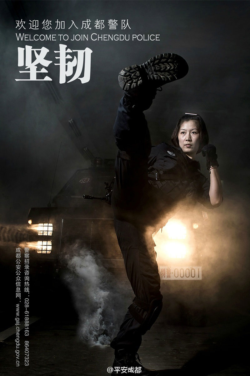 Recruitment promotion pictures posted by Chengdu Public Security Bureau on Sina Weibo, the Chinese equivalent of Twitter. (Photo/Weibo)