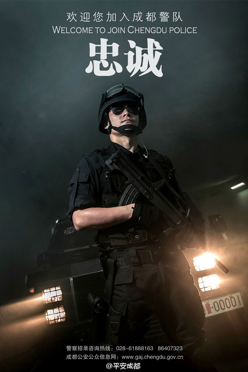 Recruitment promotion pictures posted by Chengdu Public Security Bureau on Sina Weibo, the Chinese equivalent of Twitter. (Photo/Weibo)